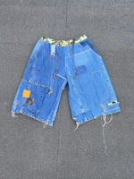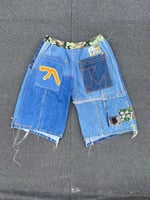 patch worked out of various denim fabrics, with little patch details and jkm/aphex twin back pocket embroidery! bubble bath bad boy business.